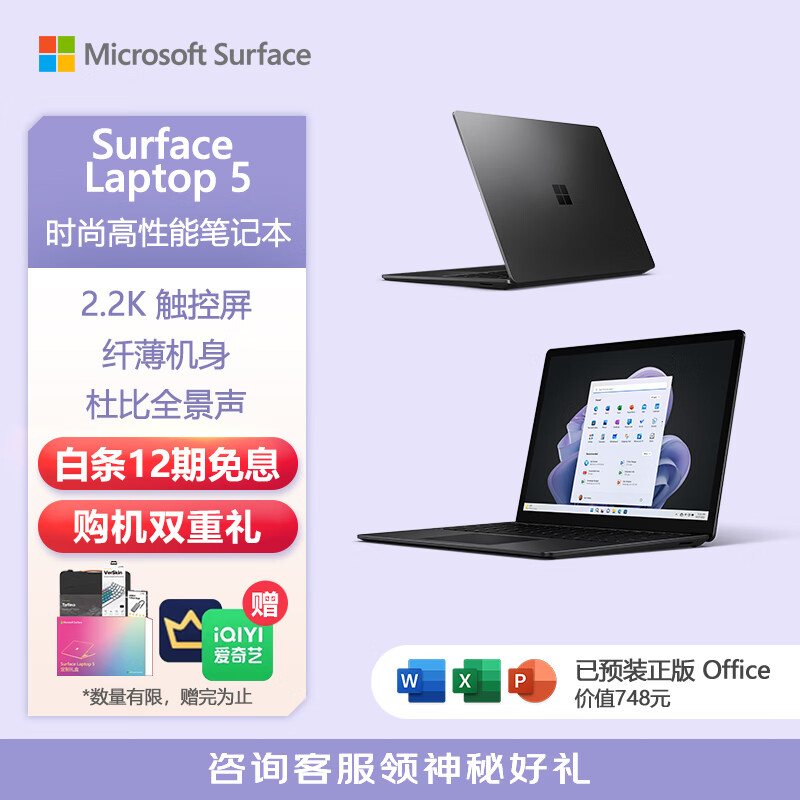 微软Surface Laptop 5 轻薄办公笔记本电脑 i7 16G+512G 典雅黑 Evo认证 13.5英寸 2.2K高色域触控屏价格:13188.00元!