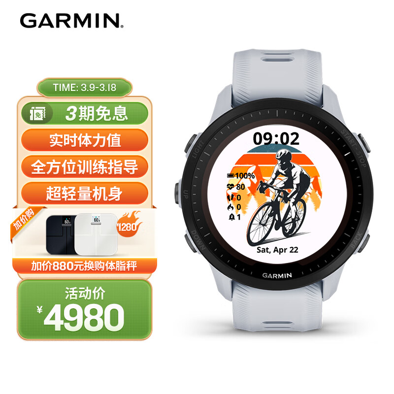 佳明(GARMIN)Forerunner955智能手表太阳能铁人三项多星定位心率血氧音乐支付价格:4980.00元!