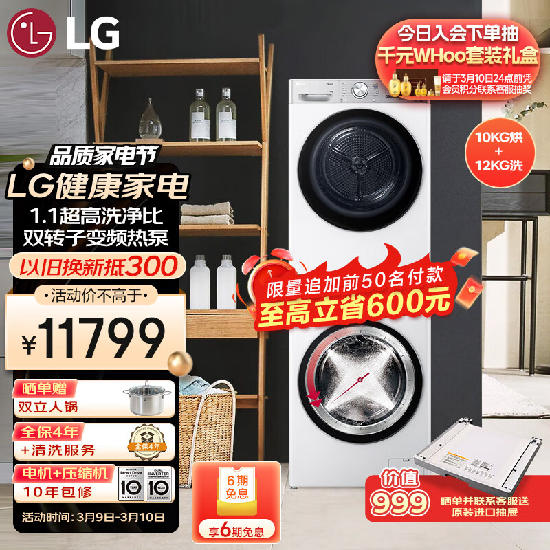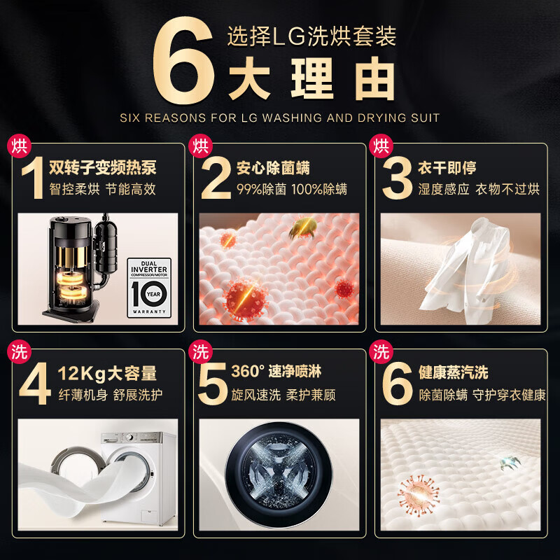 LG小旋风MAX洗烘套装 12kg滚筒洗衣机+10kg双变频热泵烘干机洗净比1.1 FCW12Y4WA+RH10V9AV2WR白价格:12399.00元!