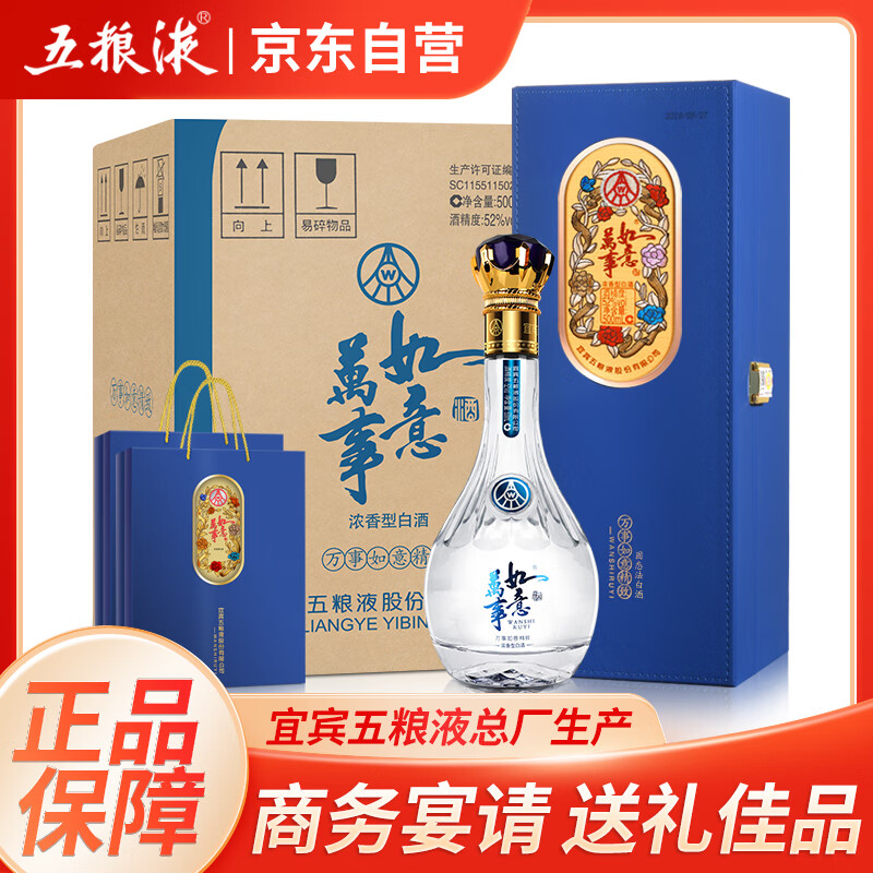 五粮液股份 送礼佳品 万事如意精致皮盒52度500ml*4瓶固态法浓香型酒价格:1252.00元!
