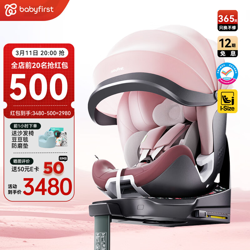 宝贝(Babyfirst)灵悦Pro婴儿童座椅汽车用0-4-7岁宝宝i-Size认证 海贝粉R155A价格:3980.00元!