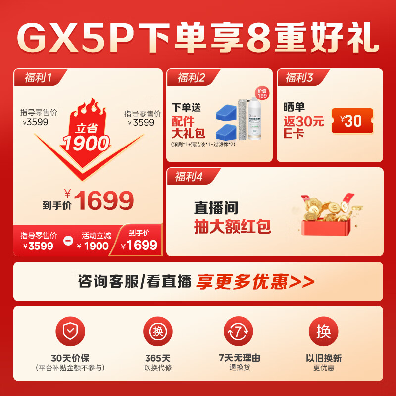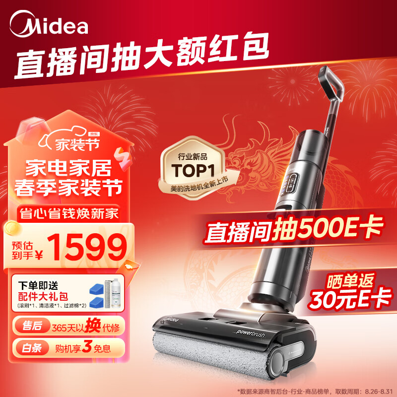 美的(Midea)洗地机GX5pro 无线家用吸尘洗拖一体机 自清洁三贴边无尘感洗地机 实时电解水除菌升级防缠绕价格:1599.00元!