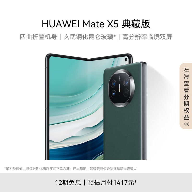 华为(HUAWEI) Mate X5 典藏版 折叠屏手机 16GB+1TB 青山黛价格:16999.00元!