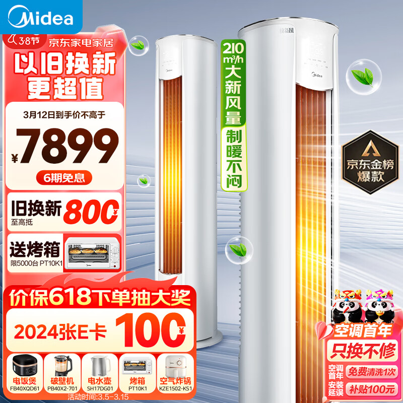 美的(Midea)3匹新风空调 新风量210?/h 焕新风新一级变频冷暖客厅立式柜机 KFR-72LW/N8MKA1A价格:7899.00元!