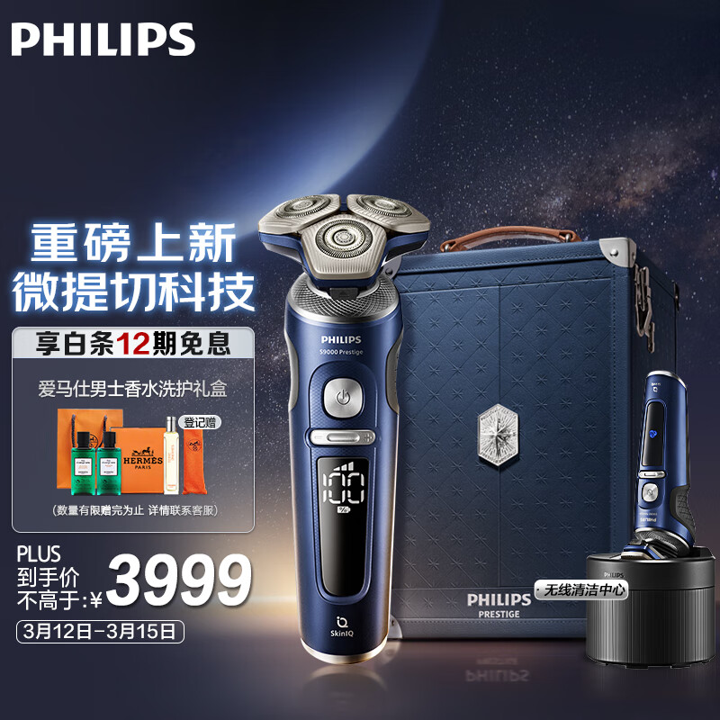 飞利浦(PHILIPS)电动剃须刀奢享蜂巢9系星空蓝礼盒 微提切科技刮胡刀 生日礼物 送男友 送老公【整机荷兰进口】价格:4599.00元!