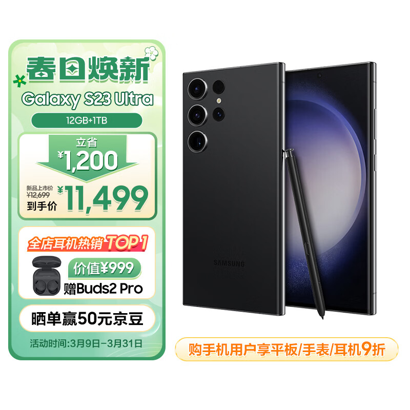三星 SAMSUNG Galaxy S23 Ultra 2亿像素 第二代骁龙8移动平台 12GB+1TB 悠远黑 5G游戏手机价格:11499.00元!