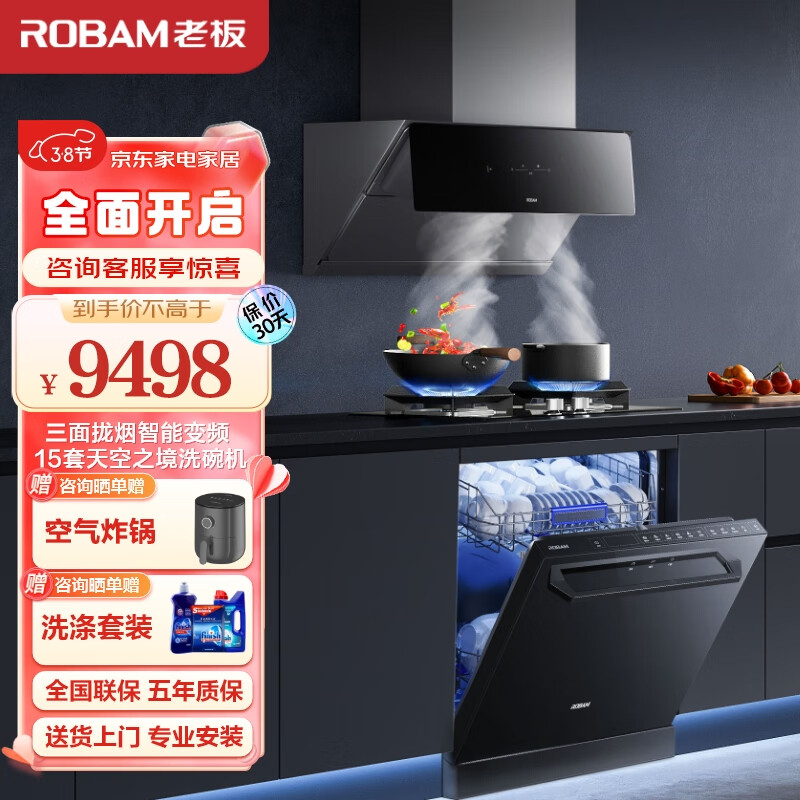 老板(Robam)探索家D3S变频 23大风量抽油烟机灶具15套洗碗机嵌入式独立式两用厨房多件套28D3S+57B2DT+F80D黑价格:9498.00元!
