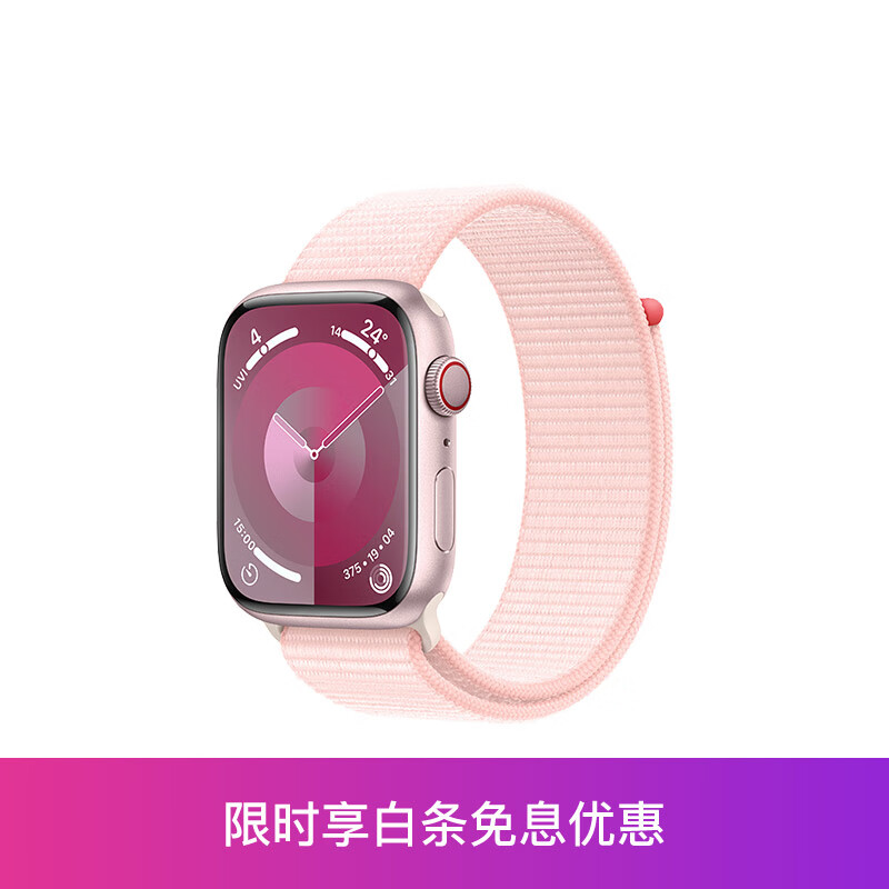Apple/苹果 Watch Series 9 智能手表蜂窝款45毫米粉色铝金属表壳亮粉色回环式运动表带 S9 MRPF3CH/A【免息版】价格:3999.00元!