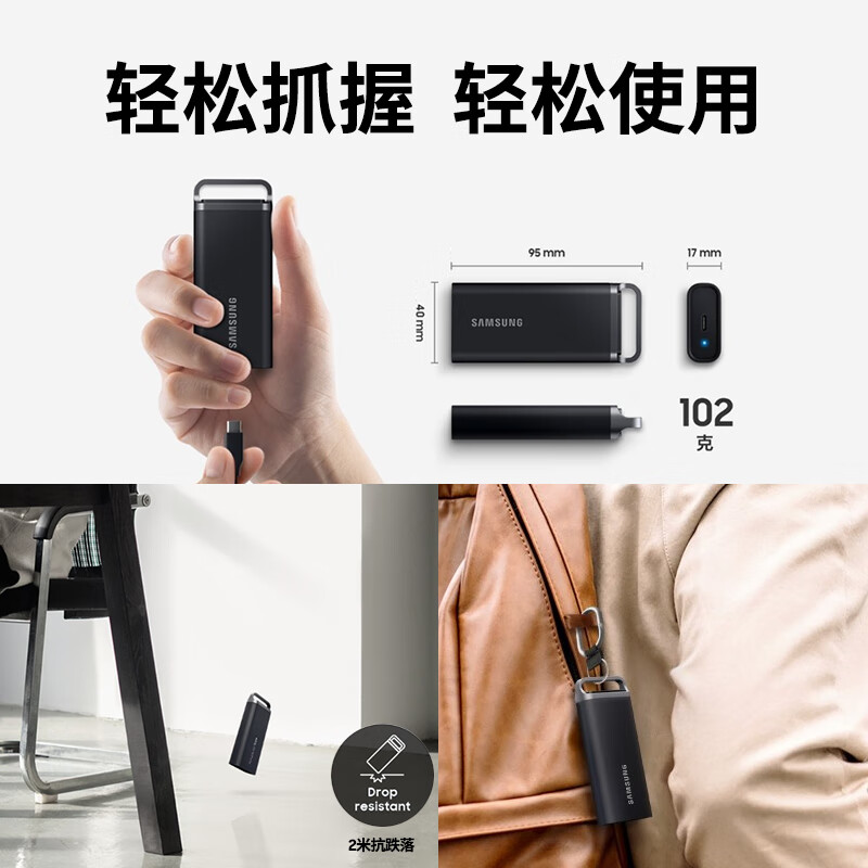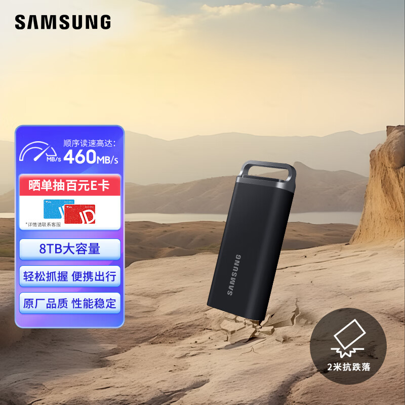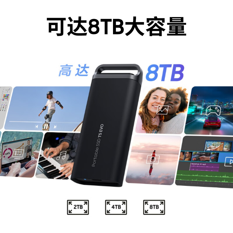 三星(SAMSUNG)8TB Type-c USB 3.2 移动固态硬盘(PSSD)T5 EVO 星耀黑 多设备兼容性能稳定价格:3999.00元!