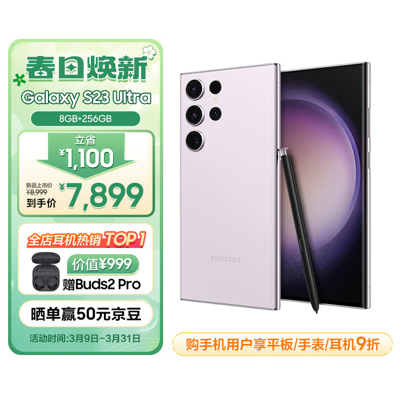 三星 SAMSUNG Galaxy S23 Ultra 超视觉夜拍 稳劲性能 大屏S Pen书写 8GB+256GB 悠雾紫 5G手机价格:7899.00元!