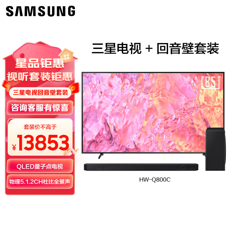 三星(SAMSUNG)85Q60Z 85英寸 QLED量子点电视 超薄4K屏电视 QA85Q60ZAJXXZ +HW-Q800C/XZ音箱套装价格:13853.00元!