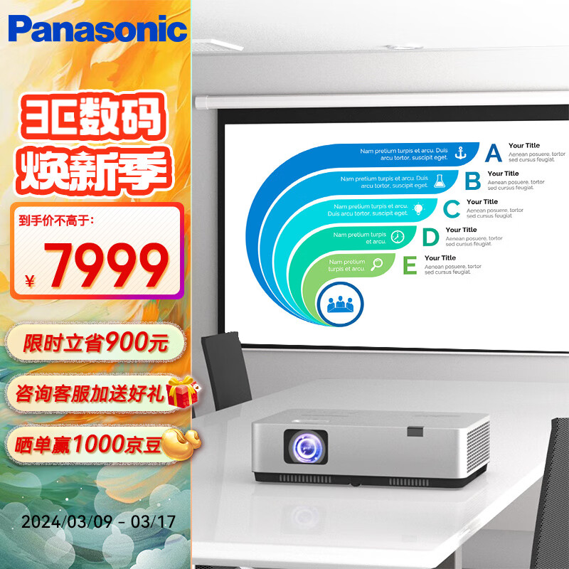 松下(Panasonic)PT-WZ4301无线投影仪 投影机办公室白天 培训会议 家用家庭影院(全高清 4300高流明 )价格:8899.00元!