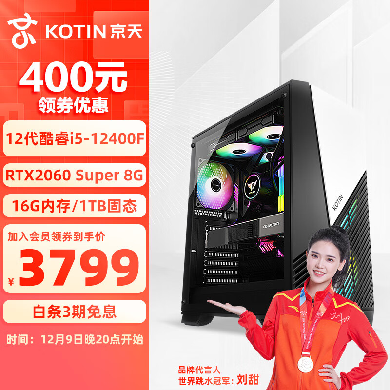 京天 Strike S68 i5-12400F/RTX2060S 8G/16G DDR4/1T NVMe台式吃鸡组装电脑电竞游戏主机UPC价格:4199.00元!