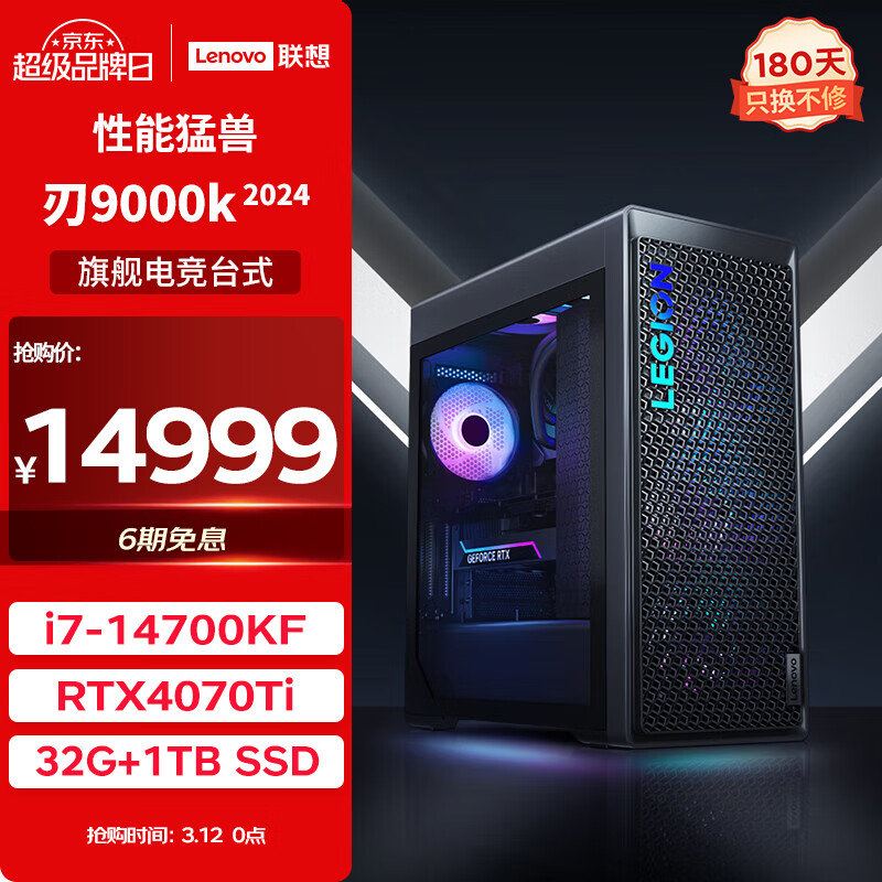 联想(Lenovo)拯救者刃9000K 2024游戏电竞电脑主机( 酷睿14代i7-14700KF RTX4070Ti 12G显卡 32G DDR5 1TB SSD)价格:14999.00元!