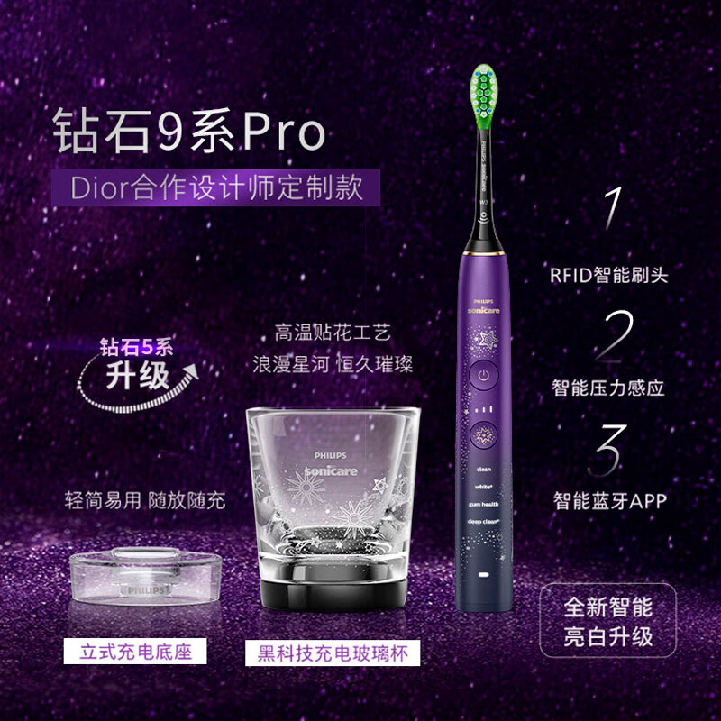 飞利浦(PHILIPS)电动牙刷成人情侣款 送女友/男友 10倍清除牙菌斑 1支刷头 钻石9系Pro礼盒 星辰紫价格:1119.00元!