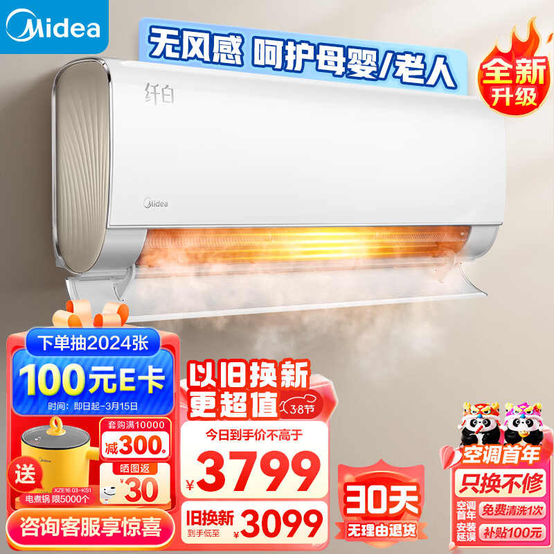 美的(Midea)新一级 纤白 1.5匹 智能家电 变频冷暖 独立除湿 壁挂式空调挂机 舒适无风感 KFR-35GW/N8MWD1价格:3799.00元!