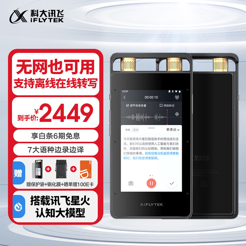 科大讯飞智能录音笔SR502星火版 32G+10G云存储 专业录音高清降噪 实时在线翻译离线转写 OCR识别价格:2449.00元!