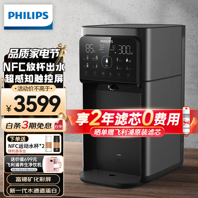 飞利浦(PHILIPS)加热净水器 家用RO反渗透净饮机 富锶矿化彩屏台式即热直饮水机 净饮一体机ADD6803/6843价格:3599.00元!