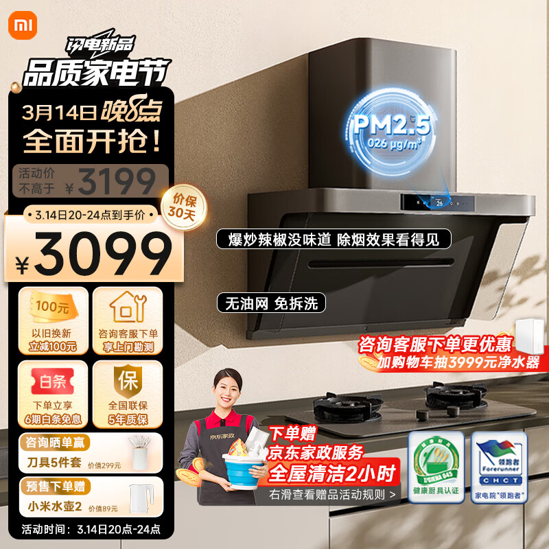 米家小米侧吸抽油烟机 净味净烟机P1 智能变频油烟机 家用厨房大吸力吸油烟机MJ04CY价格:3199.00元!