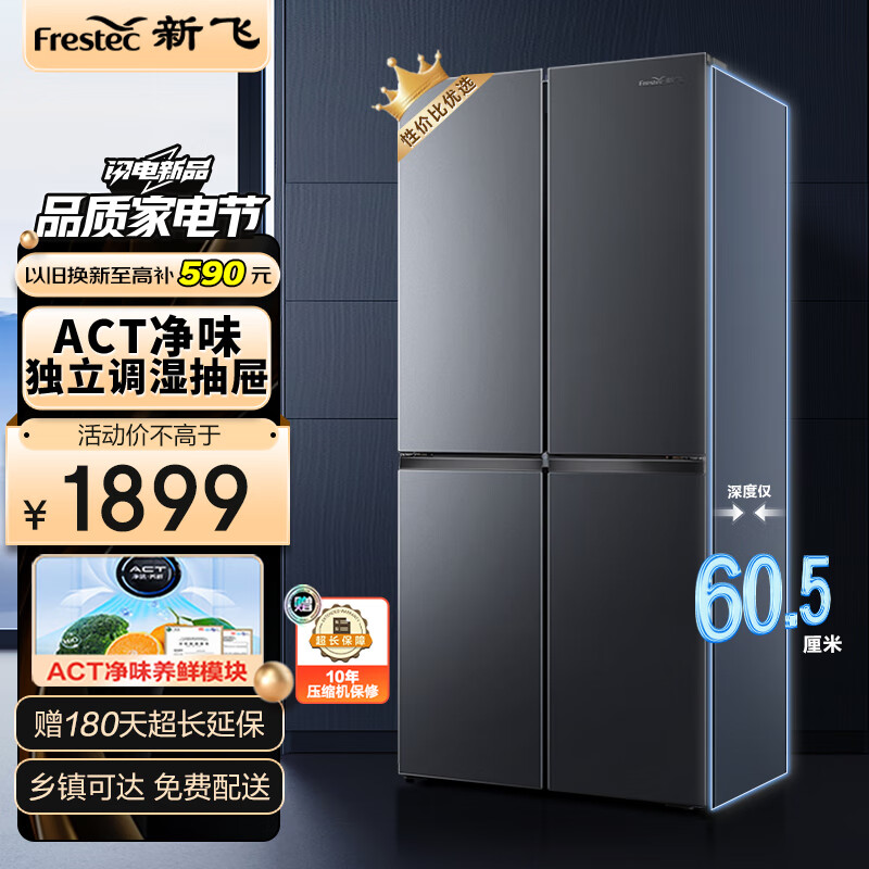 新飞(Frestec)410升60厘米系列超薄嵌入式净味变频一级能效风冷无霜家用十字变温电冰箱 BCD-410WK价格:1899.00元!