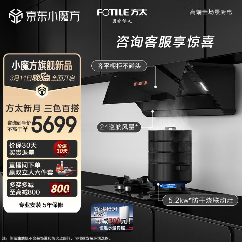 方太抽吸油烟机灶具套装 侧吸式变频烟灶24巡航风量烟灶联动挥手5.2kw防干烧 换装双灶 F1A+THK21B价格:5699.00元!