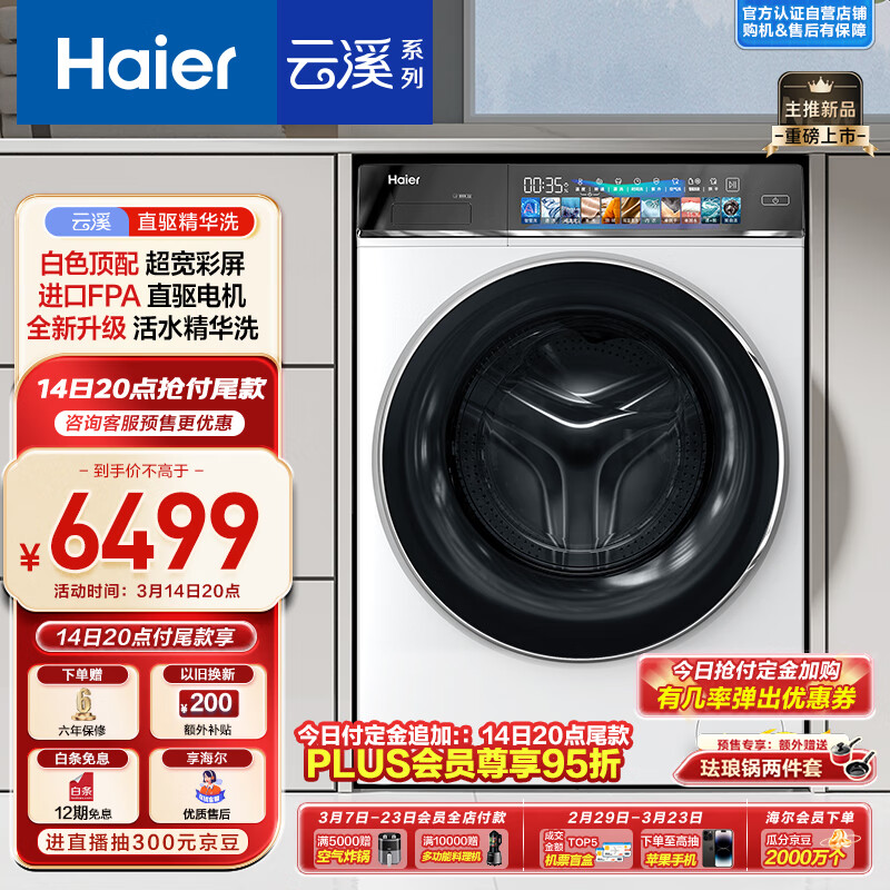 海尔(Haier)滚筒洗衣机全自动 活水精华洗2.0 云溪白376Pro 直驱超薄平嵌 超宽彩屏 EG10014HBDL9W价格:6498.00元!