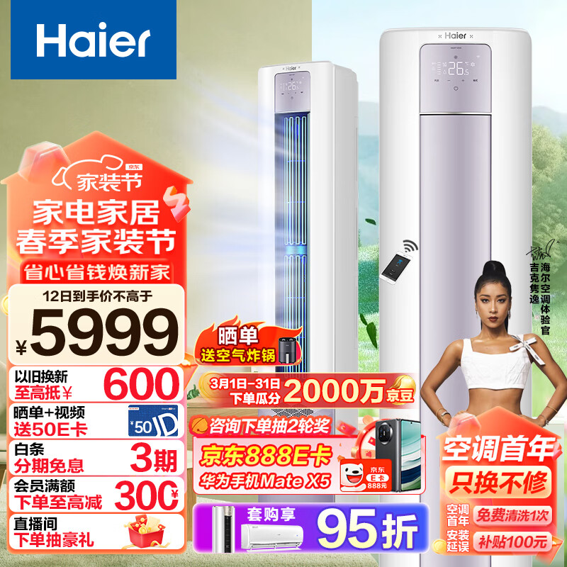 海尔(Haier)新一级能效 3匹 雷神者II 变频冷暖 客厅空调立式柜机 新风空调 KFR-72LW/28LBC81U1 以旧换新价格:5999.00元!