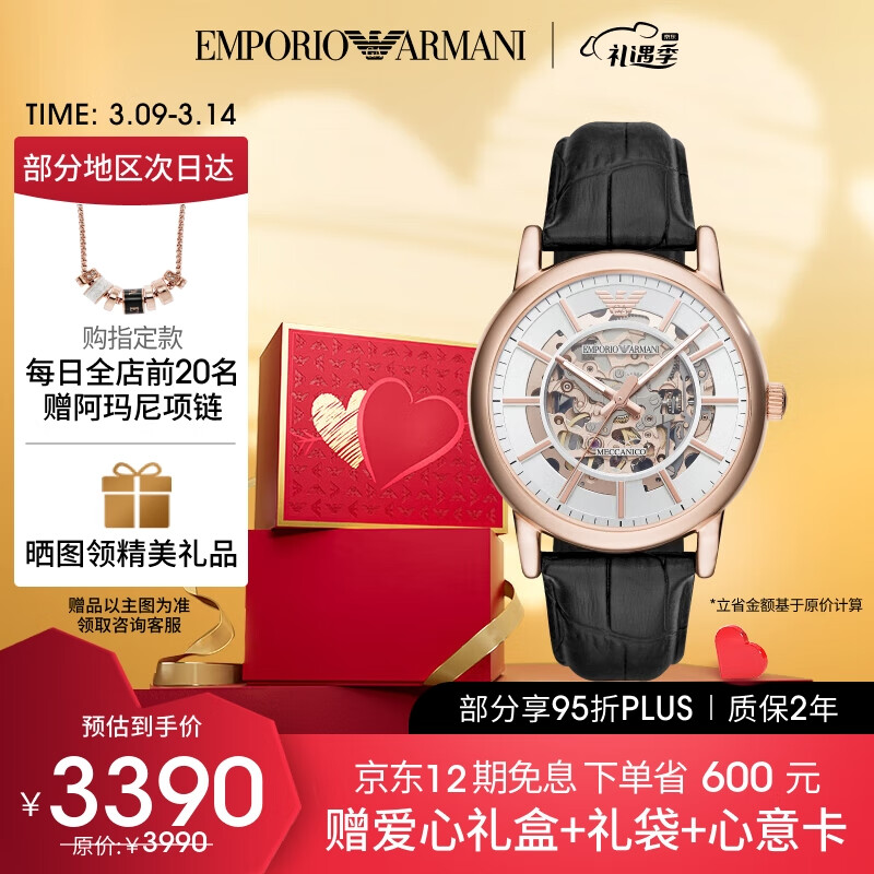 安普里奥·阿玛尼(Emporio Armani)手表男士经典欧美表皮带时尚镂空机械表生日礼物送男朋友AR60007价格:3690.00元!