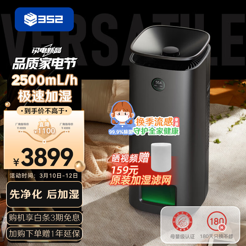 352无雾加湿器空气净化一体机家用卧室婴儿用客厅办公室落地式大容量大面积2500ml极速加湿 H300价格:4099.00元!