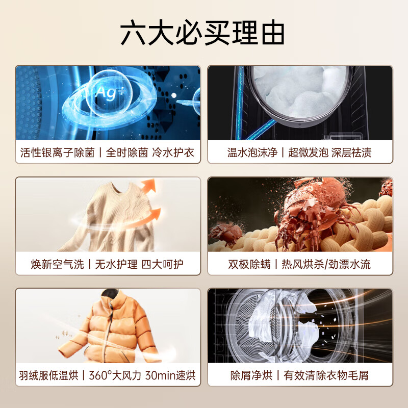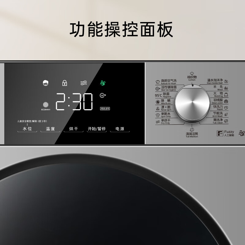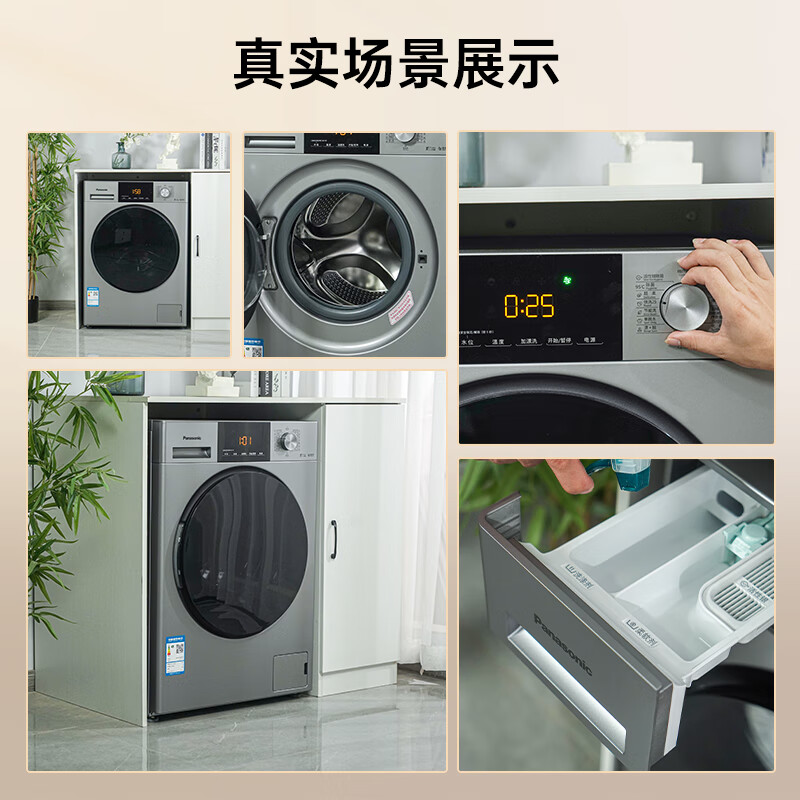 松下(Panasonic)滚筒洗衣机全自动 超薄全嵌【银骑士旗舰版】10公斤 洗烘一体 温水泡沫净 活性银 XQG100-ND183价格:4299.00元!