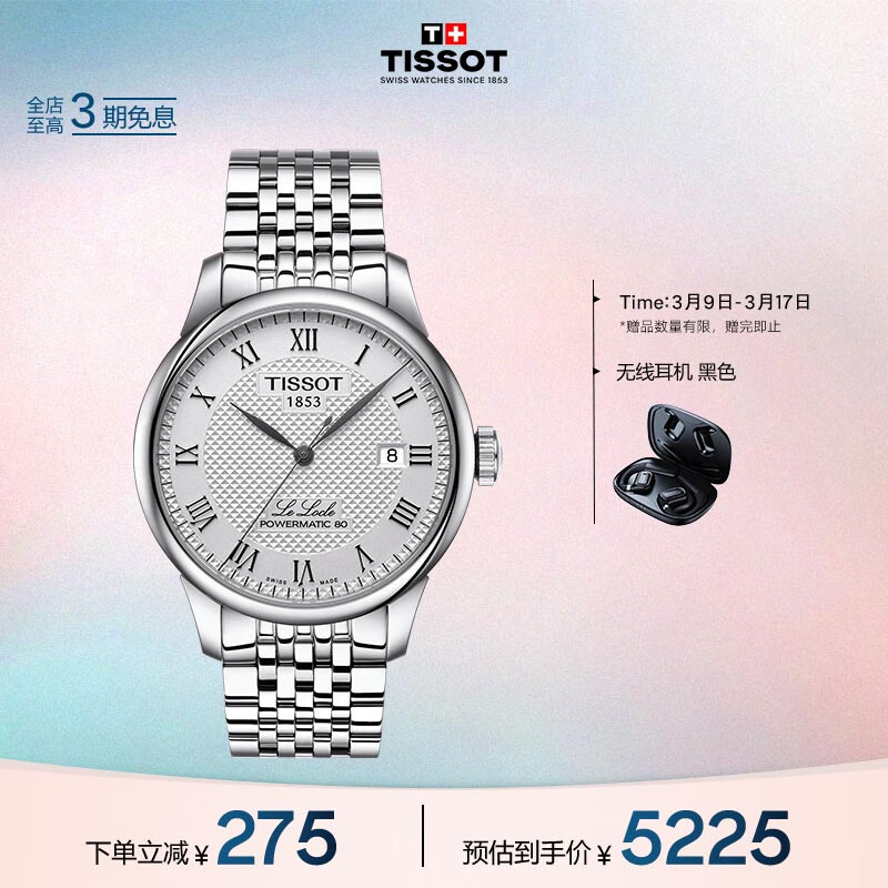 天梭(TISSOT)瑞士手表 力洛克系列腕表 钢带机械男表 T006.407.11.033.00价格:5500.00元!
