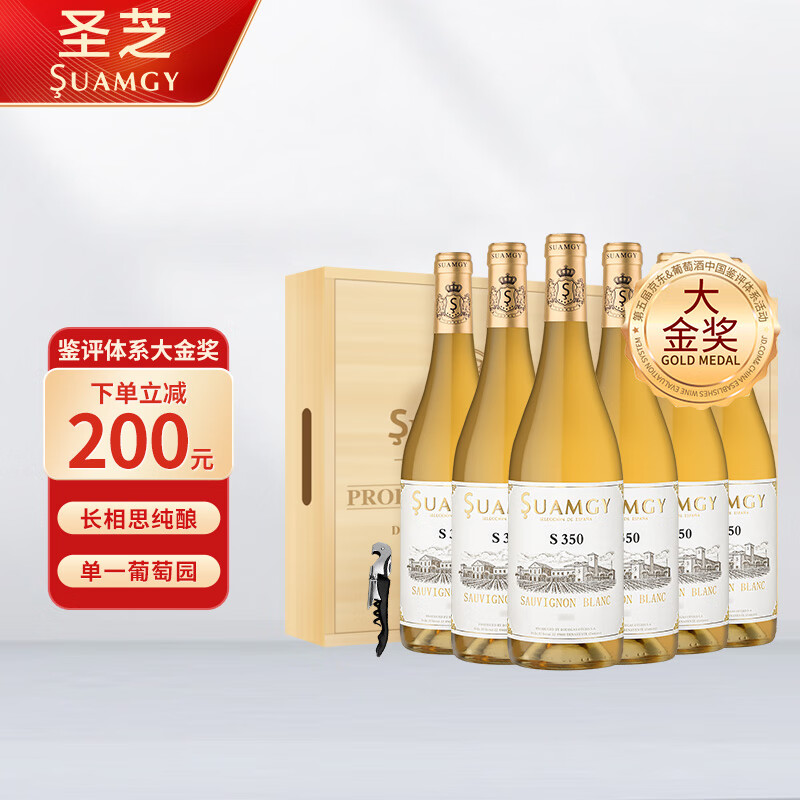圣芝(Suamgy)S350长相思干白葡萄酒 750ml*6瓶 整箱木箱装价格:1168.00元!