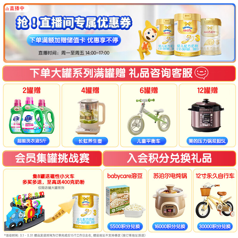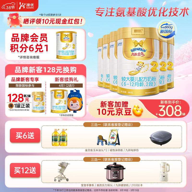 澳优(Ausnutria)荷兰进口能立多 幼儿配方奶粉2段(6-12月适用)860g*6罐 新国标价格:2100.00元!