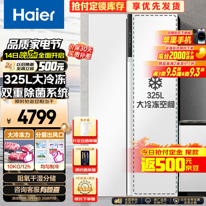 海尔(Haier)621升巨能冻对开门双开门电冰箱家用一级能效变频节能超大冷冻容量超薄嵌入式BCD-621WLHSS95W9U1价格:5299.00元!