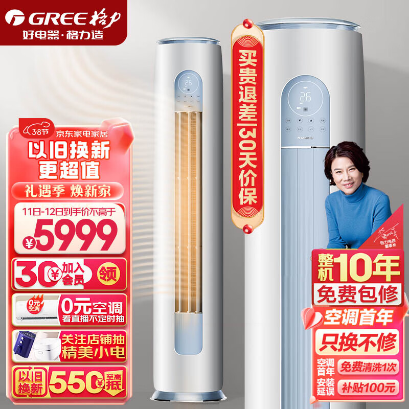 格力(GREE)空调 京东小家智能生态 2匹 云逸-Ⅱ 1级能效 客厅空调立式空调柜机KFR-50LW/NhGm1BAj价格:5999.00元!