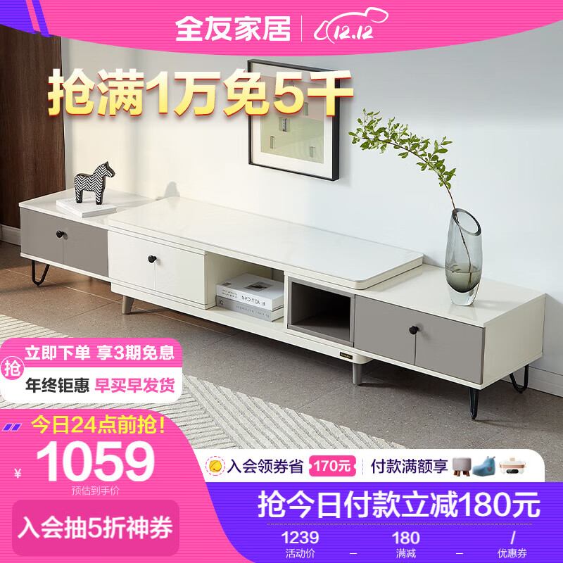 全友家居 现代简约灰白双色地柜岩板台面电视柜小户型客厅家具120797A价格:1239.00元!