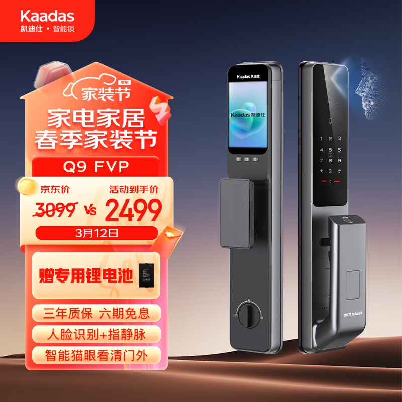 凯迪仕(kaadas)3D人脸猫眼大屏指静脉智能门锁Q9FVP 指纹锁 电子密码锁 星空灰价格:4199.00元!