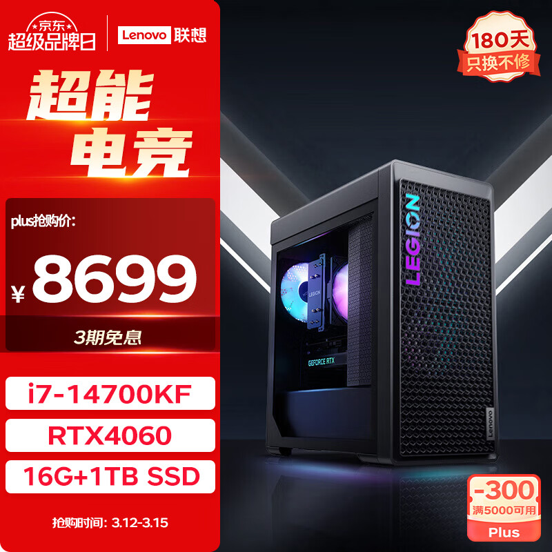 联想(Lenovo)拯救者刃7000K 2024游戏电竞台式电脑主机(酷睿14代i7-14700KF RTX4060 8GB显卡 16G 1T SSD)价格:8999.00元!