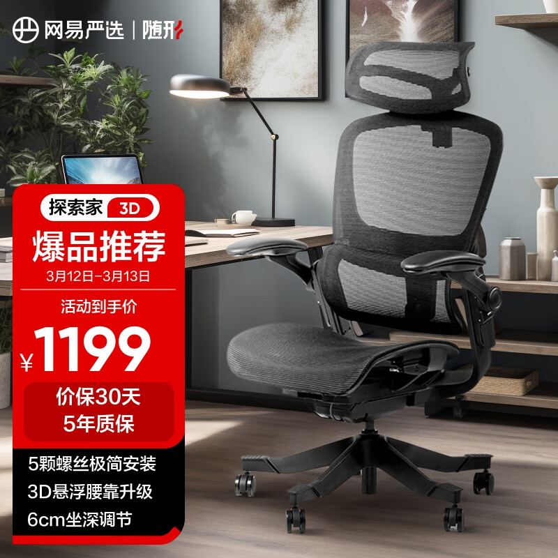 网易严选探索家经典款无搁脚 人体工学电脑椅办公电竞老板会议学习椅凳子价格:1799.00元!