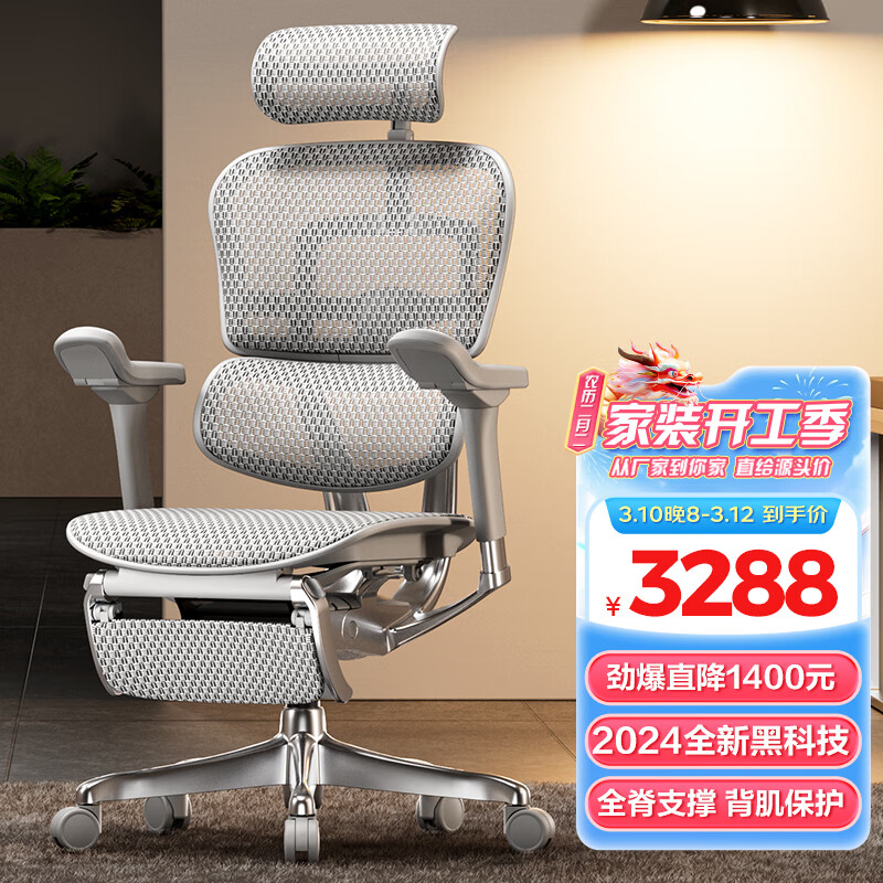 保友办公家具(Ergonor)金豪e 2代高端人体工学椅电脑椅办公椅电竞椅子 银白网+躺舒宝价格:4688.00元!