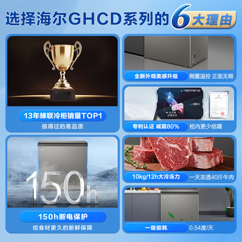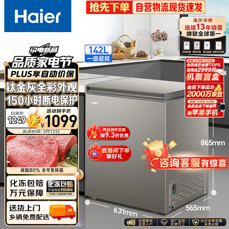 海尔(Haier)142升低霜家用商用冷藏柜冷冻柜小冰柜小型冷柜小冰箱海尔冰柜BC/BD-142GHCD价格:1139.00元!