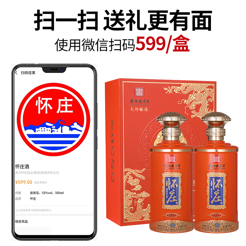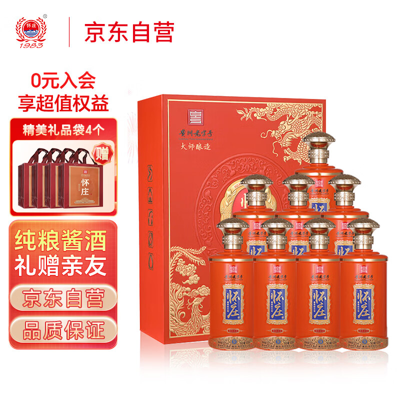 怀庄53度酱香型白酒 御藏老酒9 500ml*2瓶*4礼盒年货(含礼品袋)价格:468.00元!