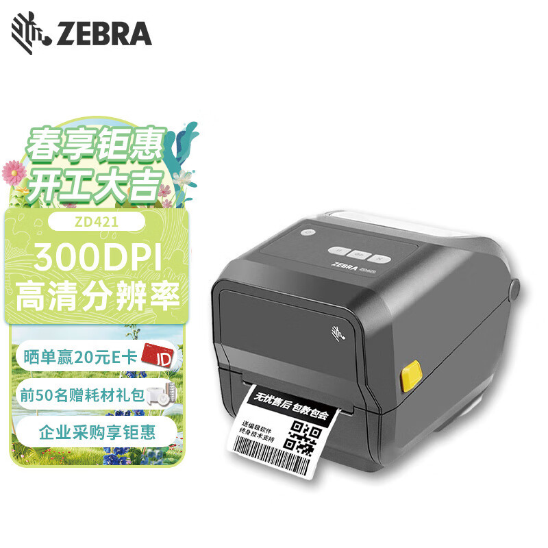 ZEBRA斑马ZD421标签条码打印机不干胶服装吊牌外卖快递二维码电子面单固定资产打印桌面办公GT800升级款价格:2300.00元!