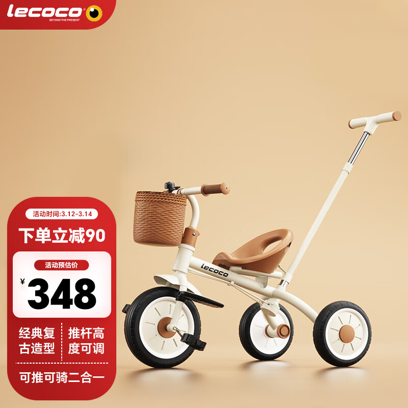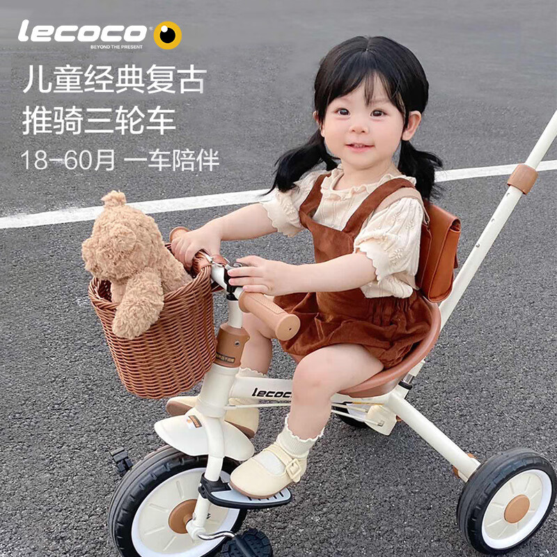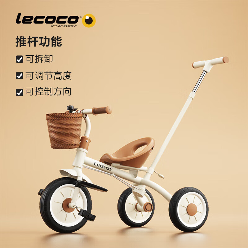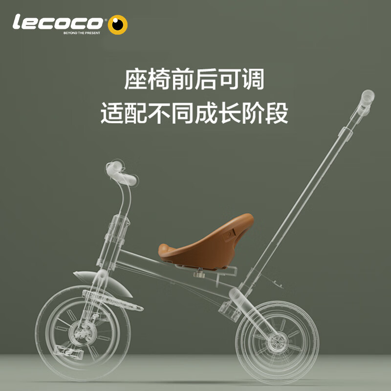 乐卡(Lecoco)儿童三轮车脚踏车宝宝推车2-5岁亲子童车 免充气轮 丝绒摩卡价格:438.00元!