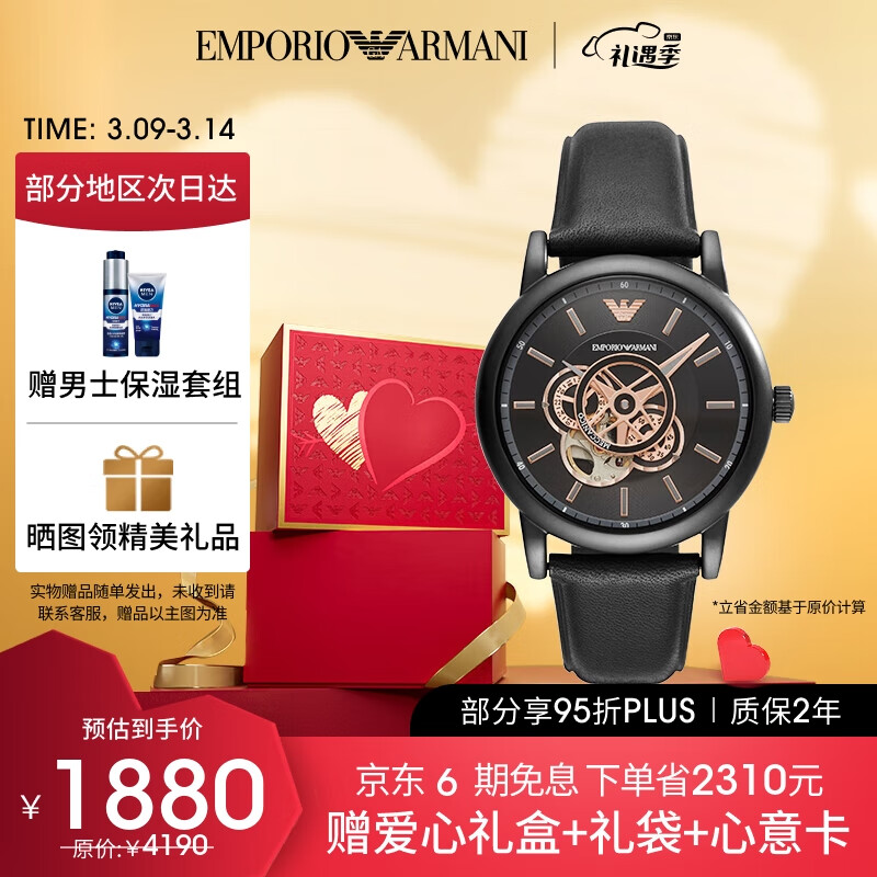 安普里奥·阿玛尼(Emporio Armani)手表男皮带机械镂空设计时尚男士欧美腕表送男生生日礼物 AR60012价格:2180.00元!