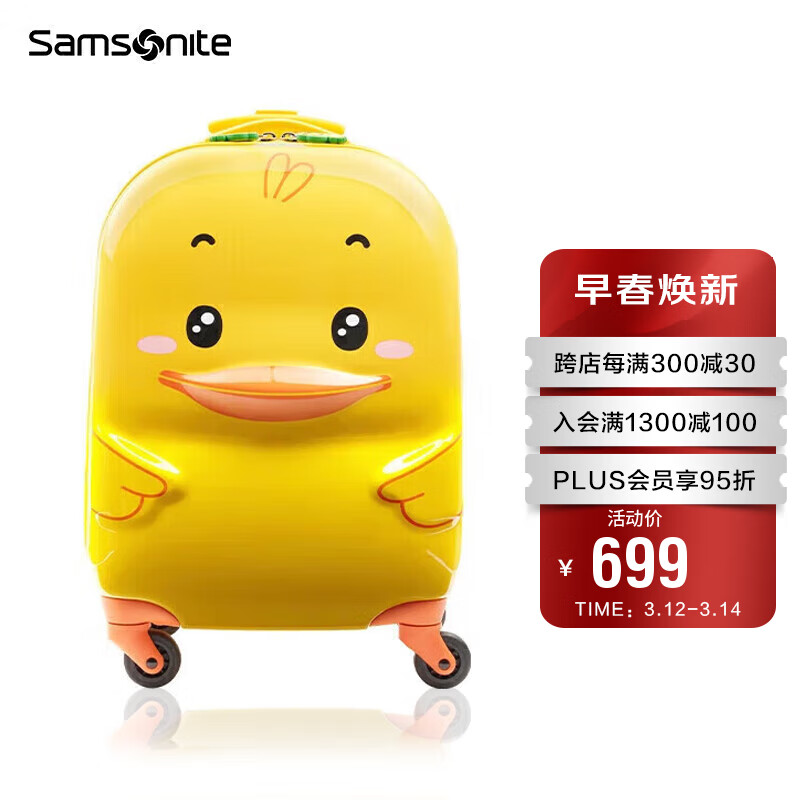 新秀丽(Samsonite)行李箱儿童旅行箱拉杆箱时尚萌趣U22*26122登机箱小黄鸭16英寸价格:699.00元!