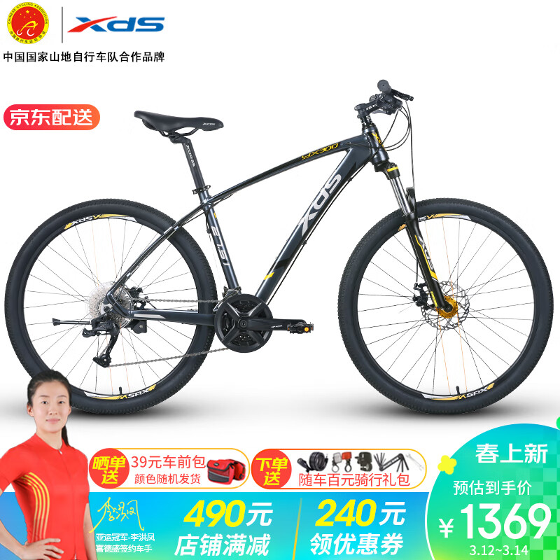 喜德盛山地自行车英雄300运动健身27速锁死前叉机械碟刹 灰黄16(京配)价格:2099.00元!