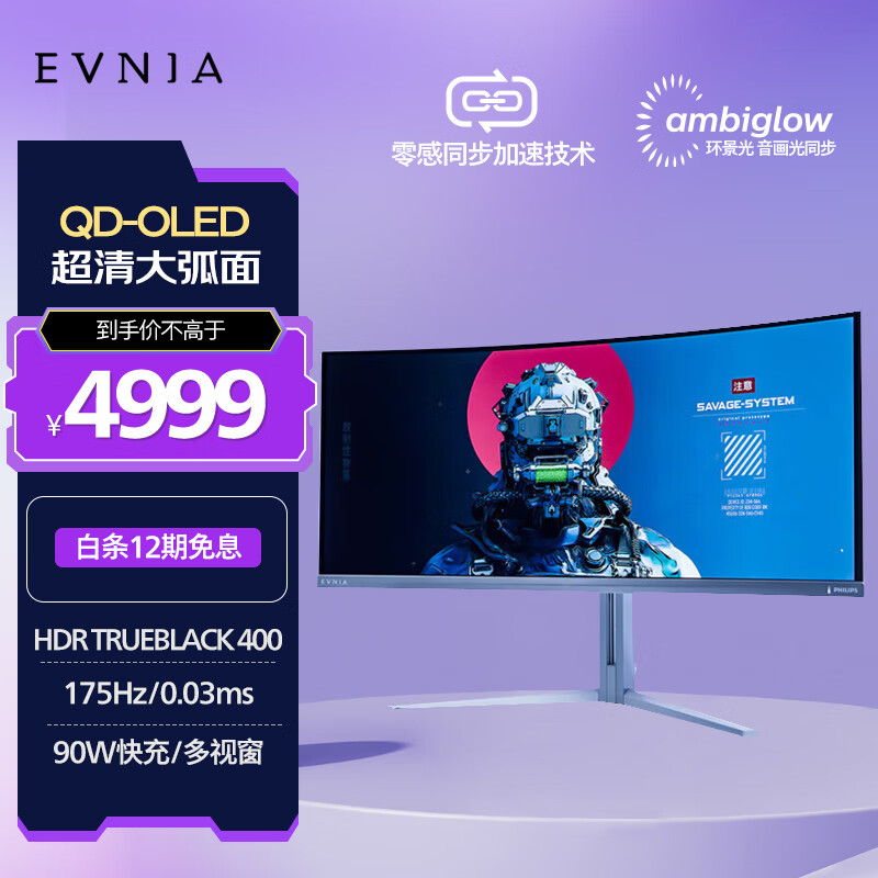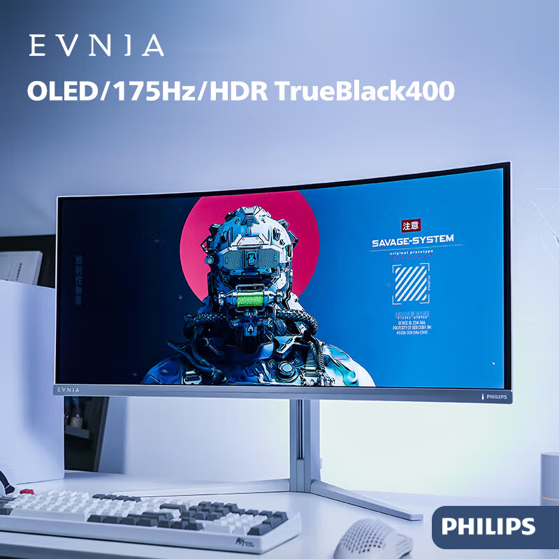 飞利浦34英寸 QD-OLED曲面带鱼屏 WQHD 175Hz0.03ms TypeC HDR400出厂校准 EVNIA电竞显示器O8 34M2C8600价格:6999.00元!