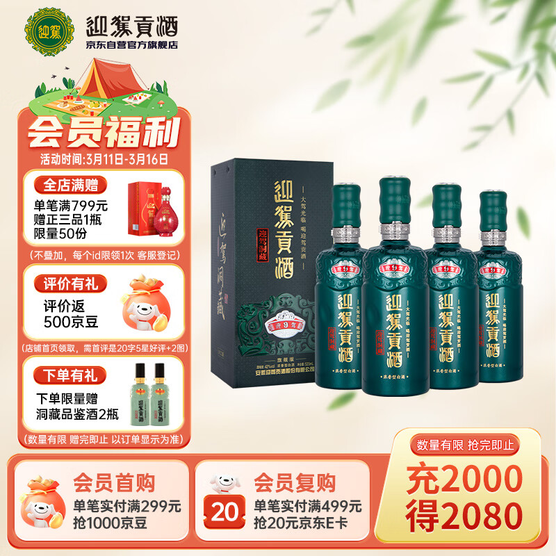 迎驾贡酒 生态洞藏9 浓香型白酒 42度 520ml*4瓶 整箱装价格:1190.00元!