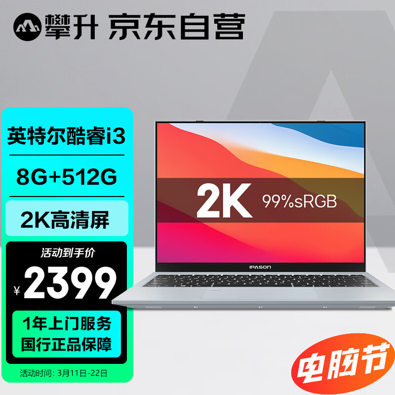 攀升【杨威推荐】国行明星款英特尔i3 13.5英寸2K低蓝光高性能笔记本电脑游戏网课设计办公轻薄本价格:2399.00元!